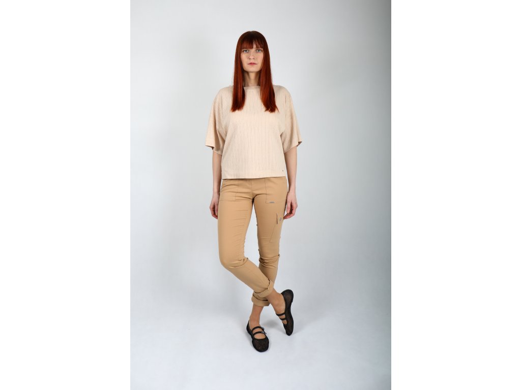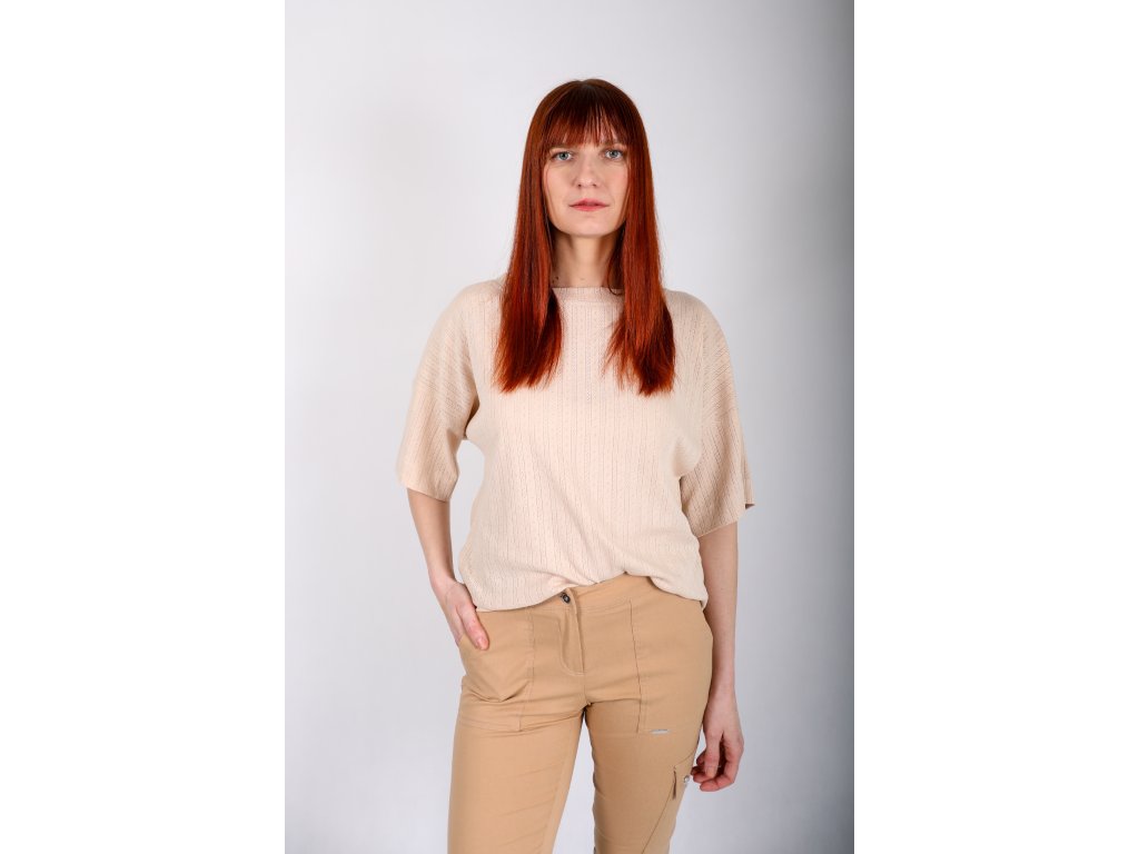 Bavlnené tričko s voľným rukávom – pieskové