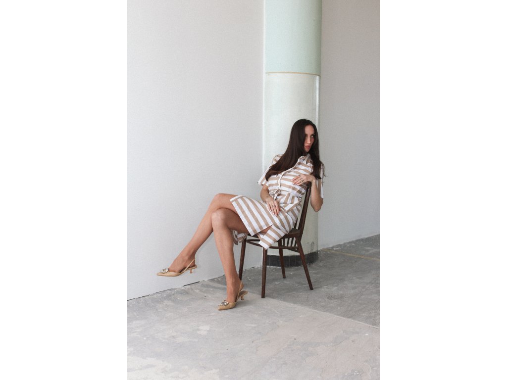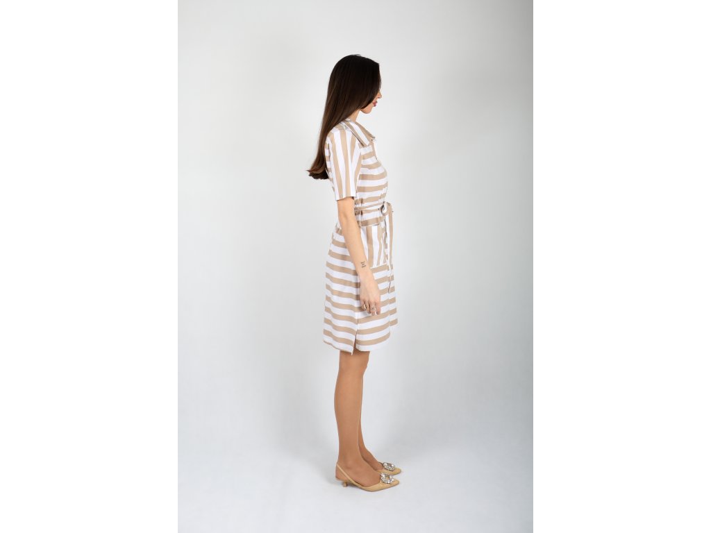 Letné pruhované šaty s krátkym rukávom – krémovo-béžové