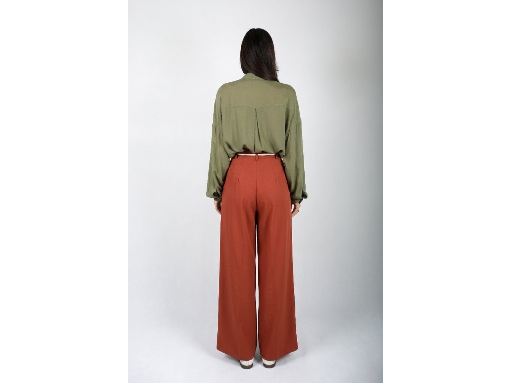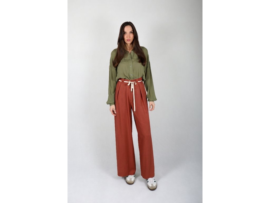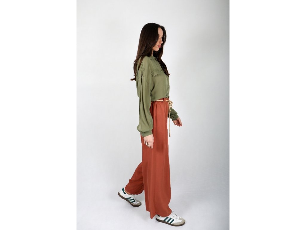 Široké letné nohavice z tencelu – tehlové